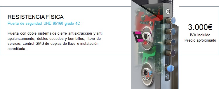 - Adquirir una caja fuerte de peso superior a 100kg, con cierto relleno de sus paredes y cerradura electrónica certificada para caja de seguridad VdS EN 1300 clase 2.